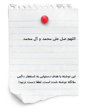 رسیدن به آمرزش الهی از آن مقاماتی است که همه طمع آن را دارند. یکی از راههای رسیدن به این مقام، استغفار دائمی است. اما حداقل برای همه چنین کاری ساده نیست. اصلاً ساده نیست که بتوانیم صبح و شام، در بیداری و خواب و به طور کلی در تمامی لحظات به استغفار بپردازیم. امــــا... همه تا حدودی از فضیلت ذکر صلوات بر پیامبر و اهل بیت ایشان (علیهم السلام) آگاهیم. اما آیا میدانستید که نوشتن صلوات هم دارای ارزش بسیاری است؟ پیامبر اکرم صلی الله علیه و آله فرمودند: مَنْ صَلّی عَلَیَّ فی کتابٍ، لَمْ تَزَل الملائِکَةُ تَستَغفِرُ لَه مادامَ اسمِی فی ذلکَ الکتابِ. کسی که در نوشتهای صلوات بر من را بنویسد، تا زمانی که نام من در آن نوشته باشد فرشتگان برای او استغفار میکنند. پس دست به کار شوید. تنها یک قلم لازم است و تکهای کاغذ و ذرهای ایمان...